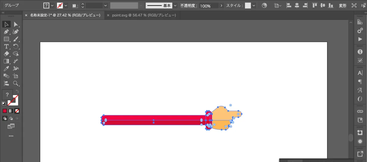 - パスや図形ツールで矢印の先端+胴体をデザイン。