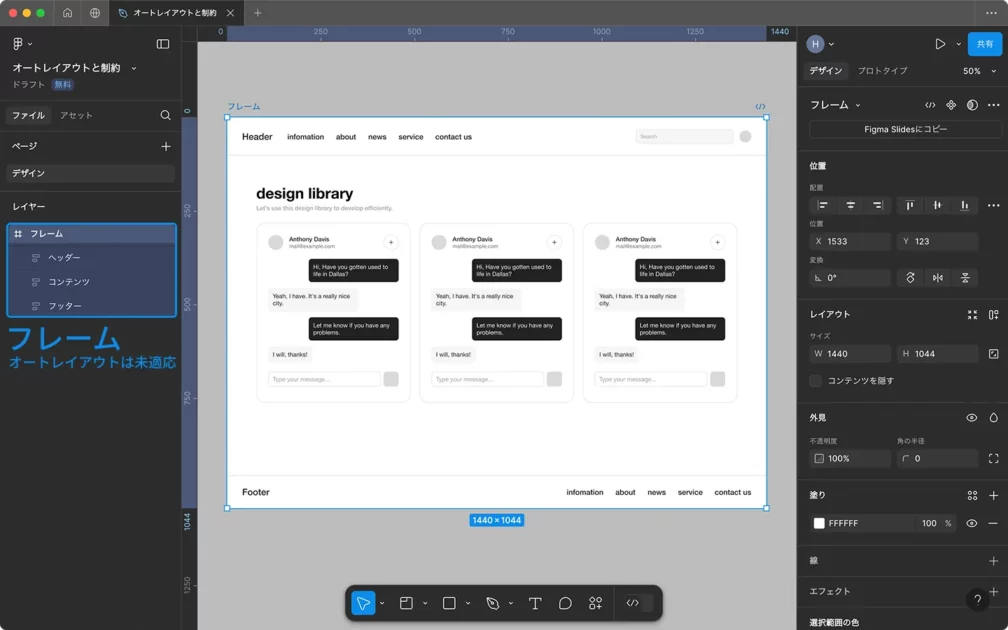 オートレイアウトはより柔軟で動的なレイアウトに、制約は固定的なレイアウトに向いています。どちらもうまく組み合わせて使うと、より効率的でレスポンシブなデザインが可能になります。