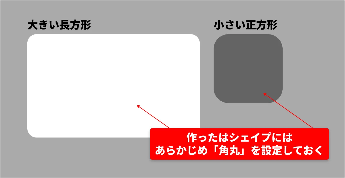 この際、作成したシェイプにはあらかじめ「角丸」を設定しておきましょう。