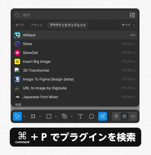 まずはFigmaのプラグイン検索から「Skew」をインストールしてみましょう。