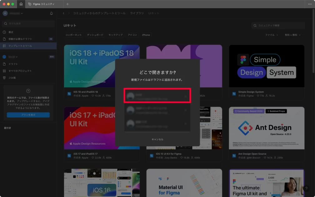 Figmaコミュニティは、Figmaアプリから簡単にアクセスできます。