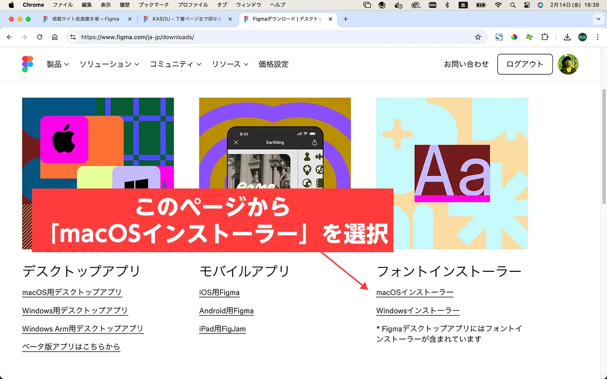- フォントインストーラーから「macOSインストーラー」を選択 (macの場合)