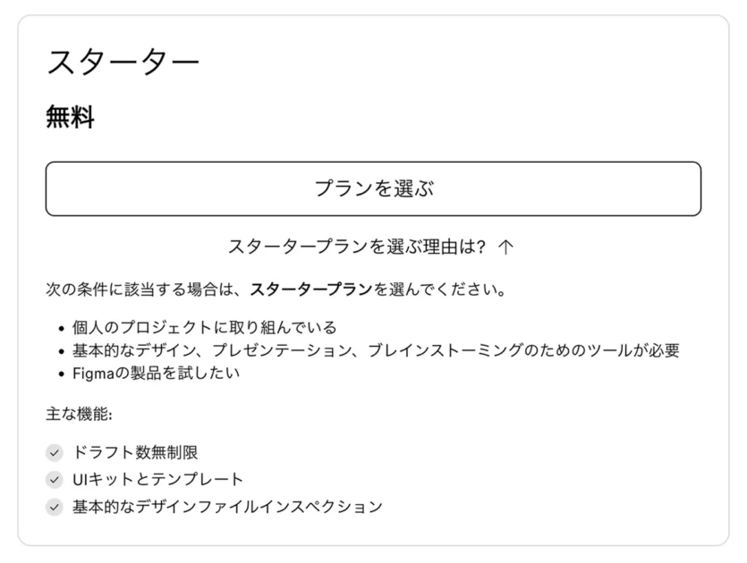 スタータープランは、その名の通り「無料」でFigmaを始めるための入り口です。