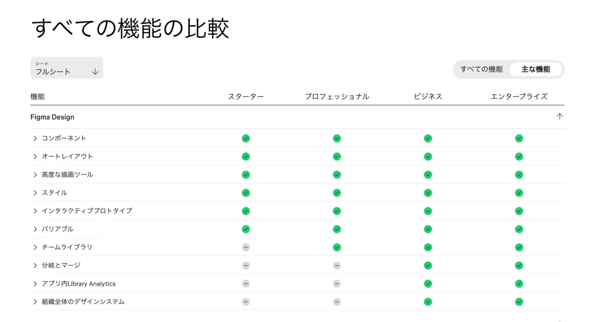 Figmaプラン別機能一覧表