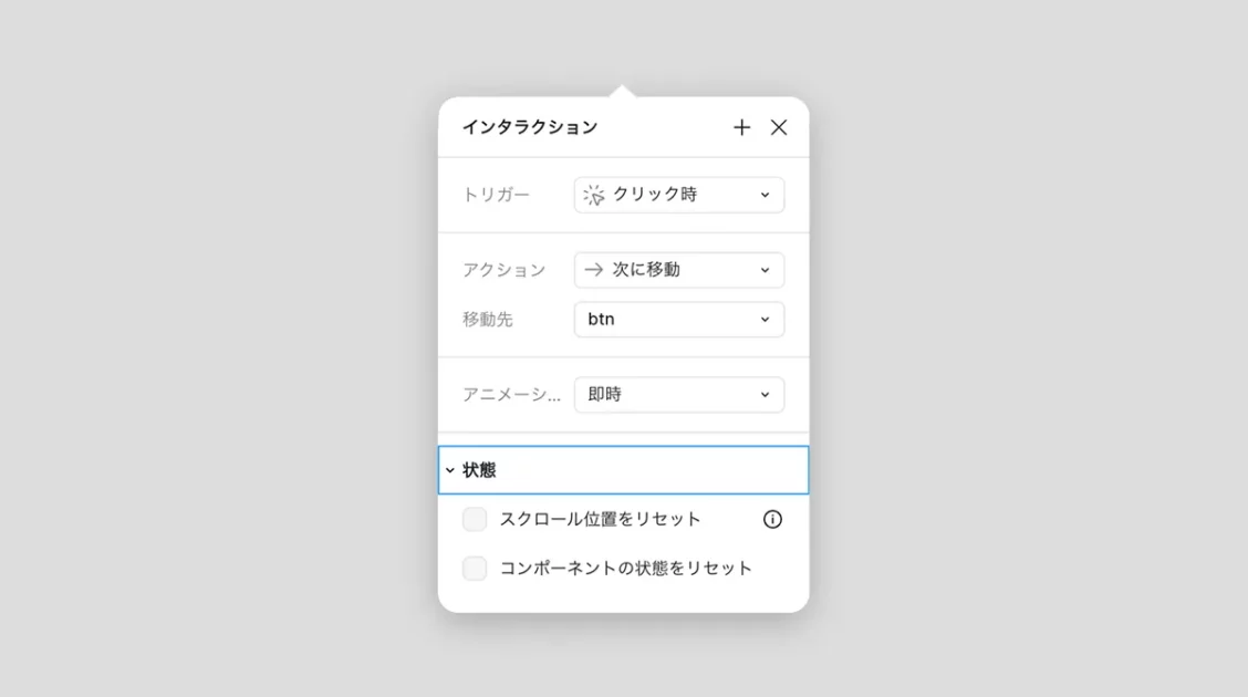 ※「動画の状態をリセット」は、Figmaの有料プランでのみ利用できる機能です。有料アカウントをお持ちの方は設定を確認してください。