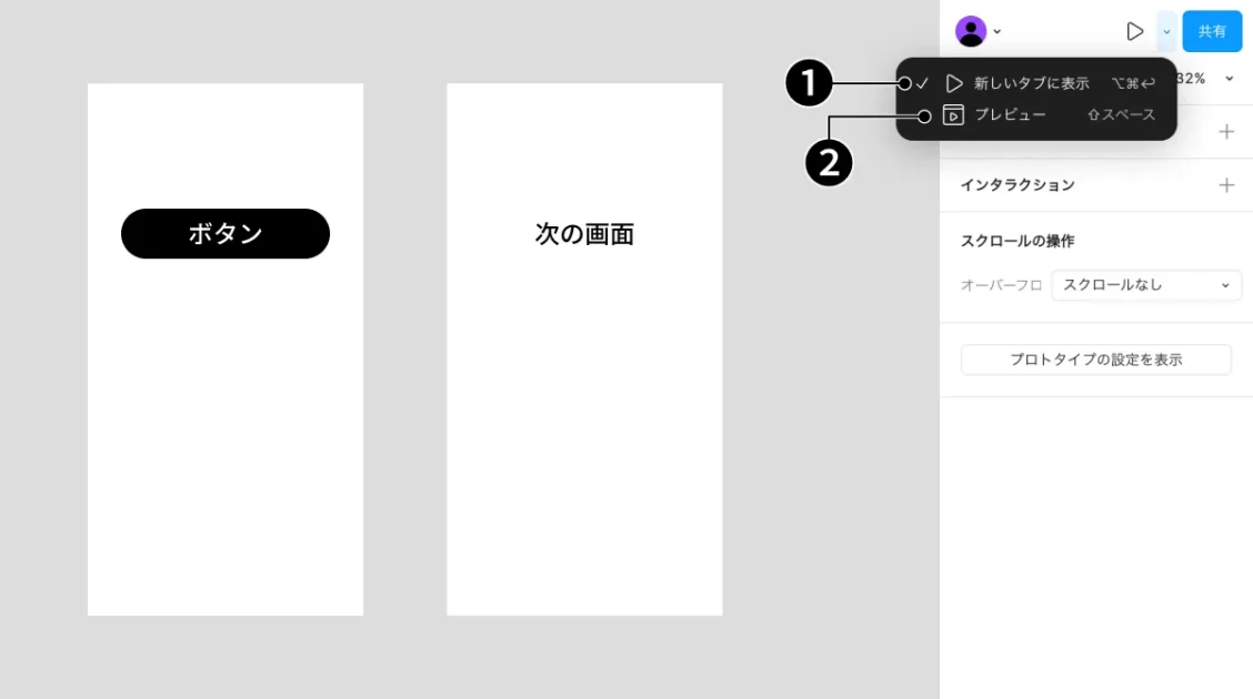 作成したプロトタイプは、Figma上で簡単にプレビューできます。