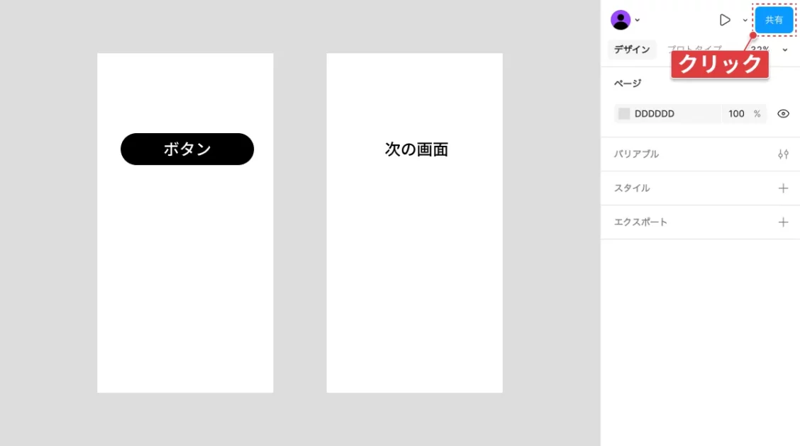 https://help.figma.com/hc/ja/articles/360040314193-Figma%E3%81%AE%E3%83%97%E3%83%AD%E3%83%88%E3%82%BF%E3%82%A4%E3%83%94%E3%83%B3%E3%82%B0%E3%81%AE%E3%82%AC%E3%82%A4%E3%83%89 - ファイルとプロトタイプを共有する