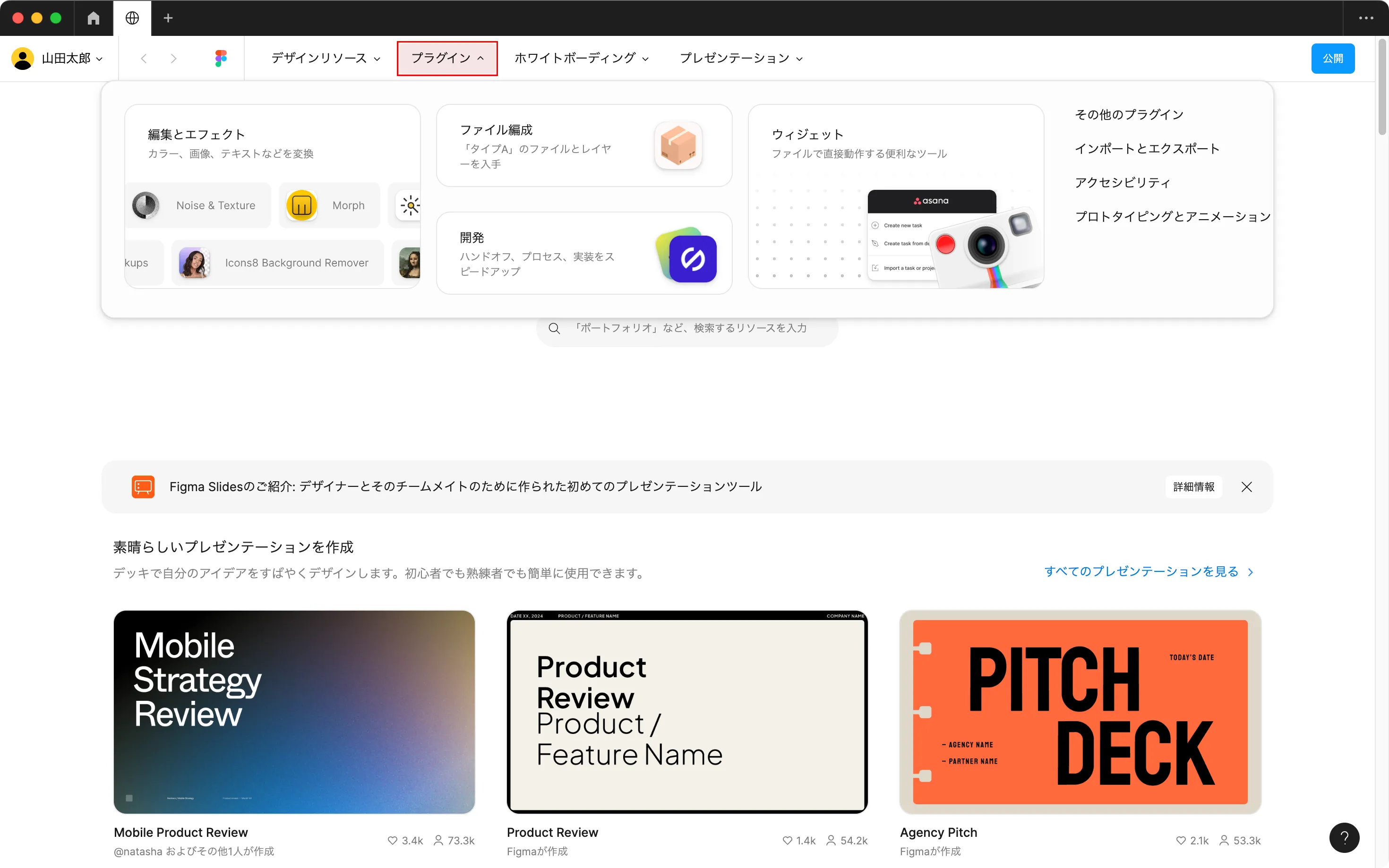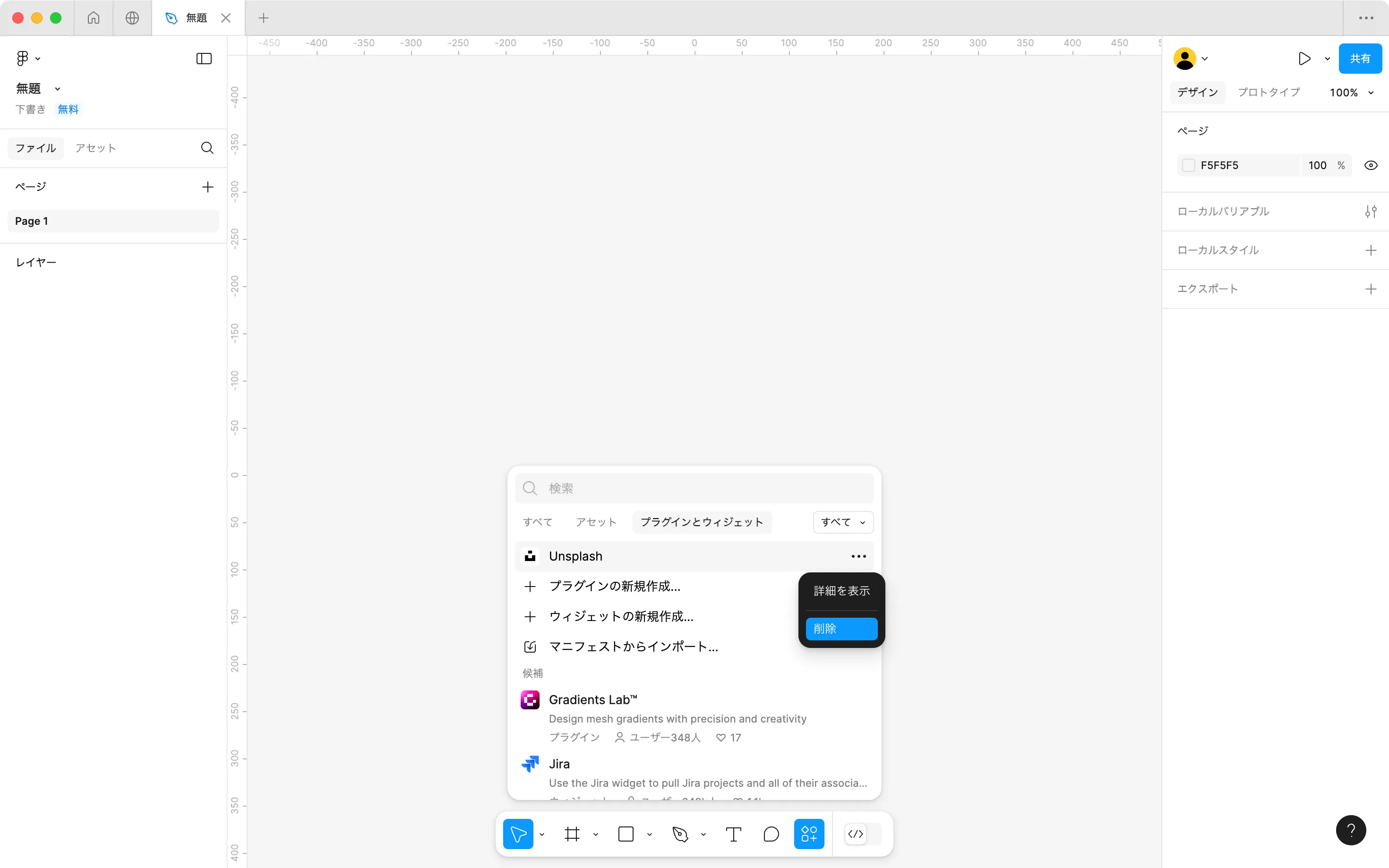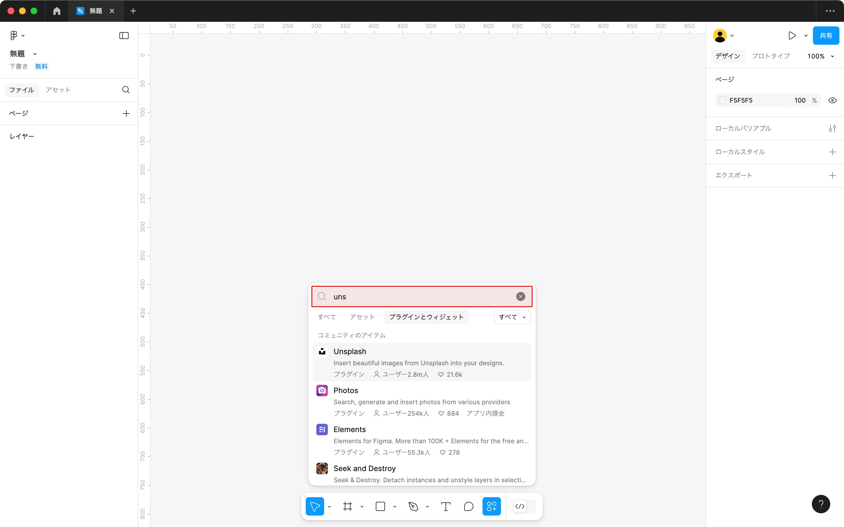 ツールバーからプラグインをインストールする方法は、Figmaのデザイン作業画面に直接アクセスしてプラグインをインストールするシンプルな方法です。