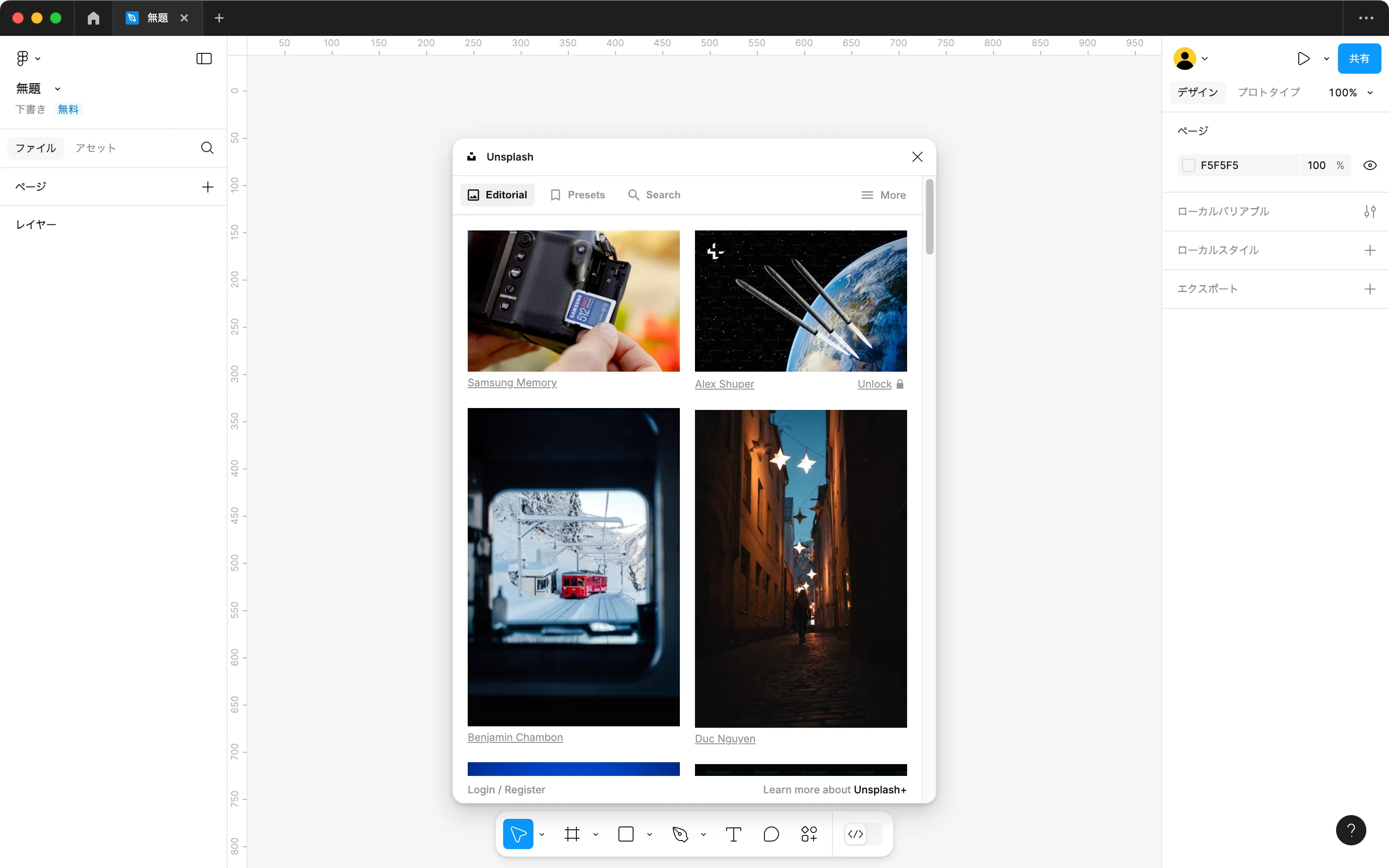 Figmaアカウントにログインし、デザインファイルを開きます。