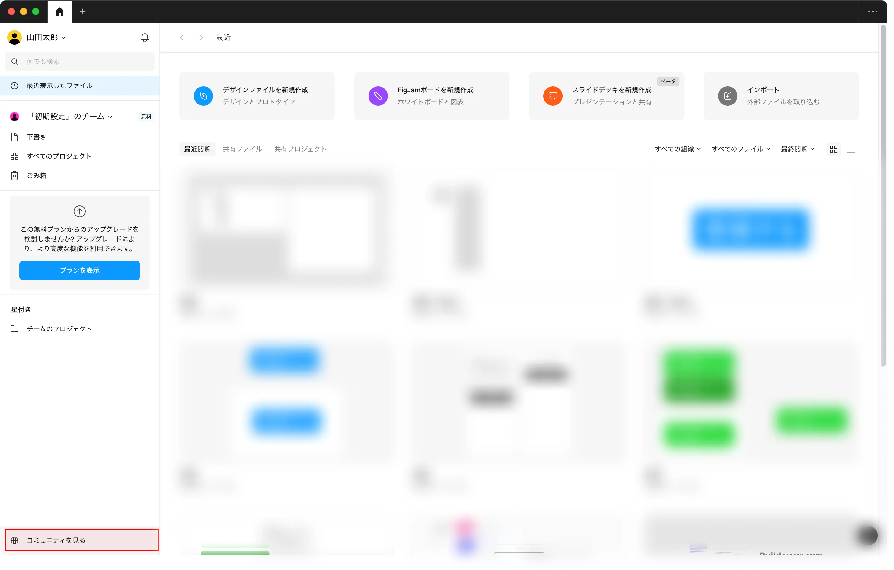 Figmaのトップ画面から左下の「コミュニティを見る」をクリックします。