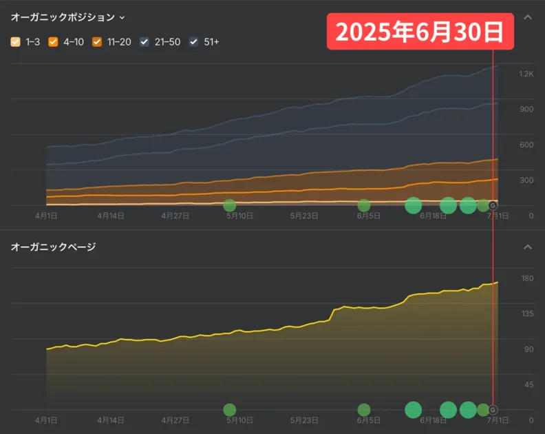 以下はコアアップデート直後のKASOUのオーガニック状況です。