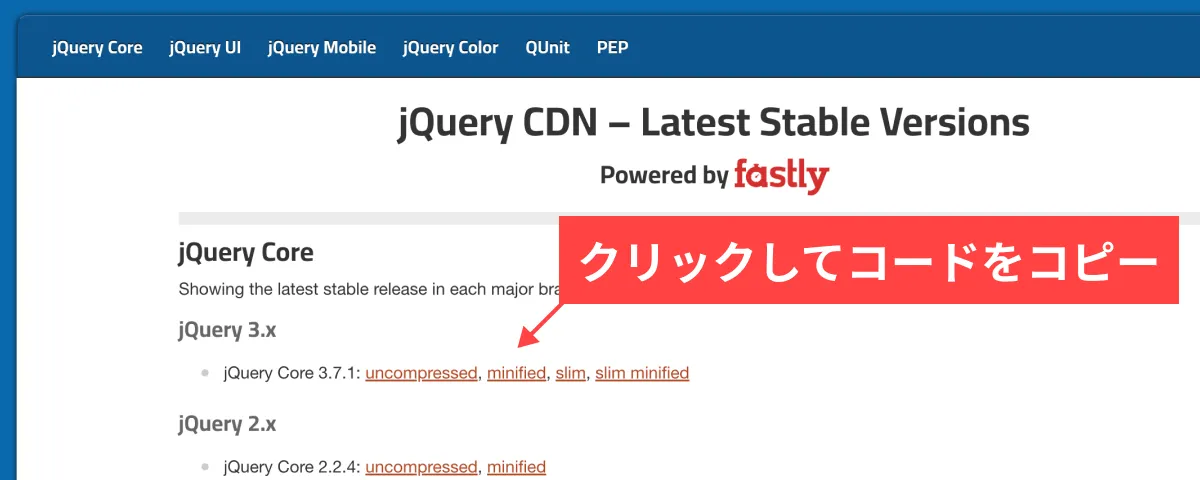 まずは Google CDNなどからjQueryを読み込みます。