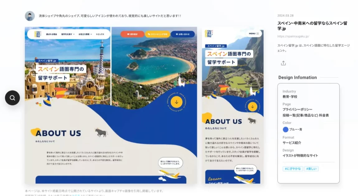 配色・イラストともにスペイン要素が多く含まれており、楽しいサイトになっています!