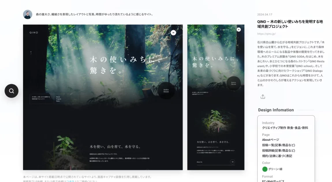 サイト内のいくつかの要素に、スクロールアニメーションがあり自然のように見え隠れするのが心地良いサイトです🌱