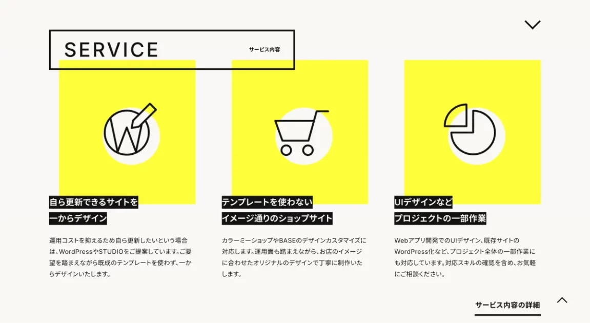 トップページのどのセクションも他のサイトと比べても デザインにオリジナリティがあり、