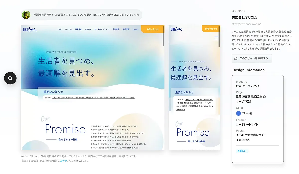 2025のKASOUアワードデザインは「株式会社オリコムのサイト」でした。