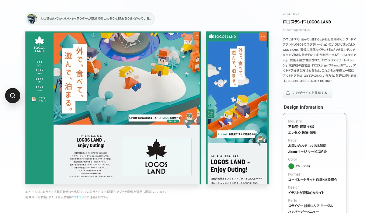 レゴのような可愛らしいキャラクターが目を引く、家族で楽しめる雰囲気のサイトです。