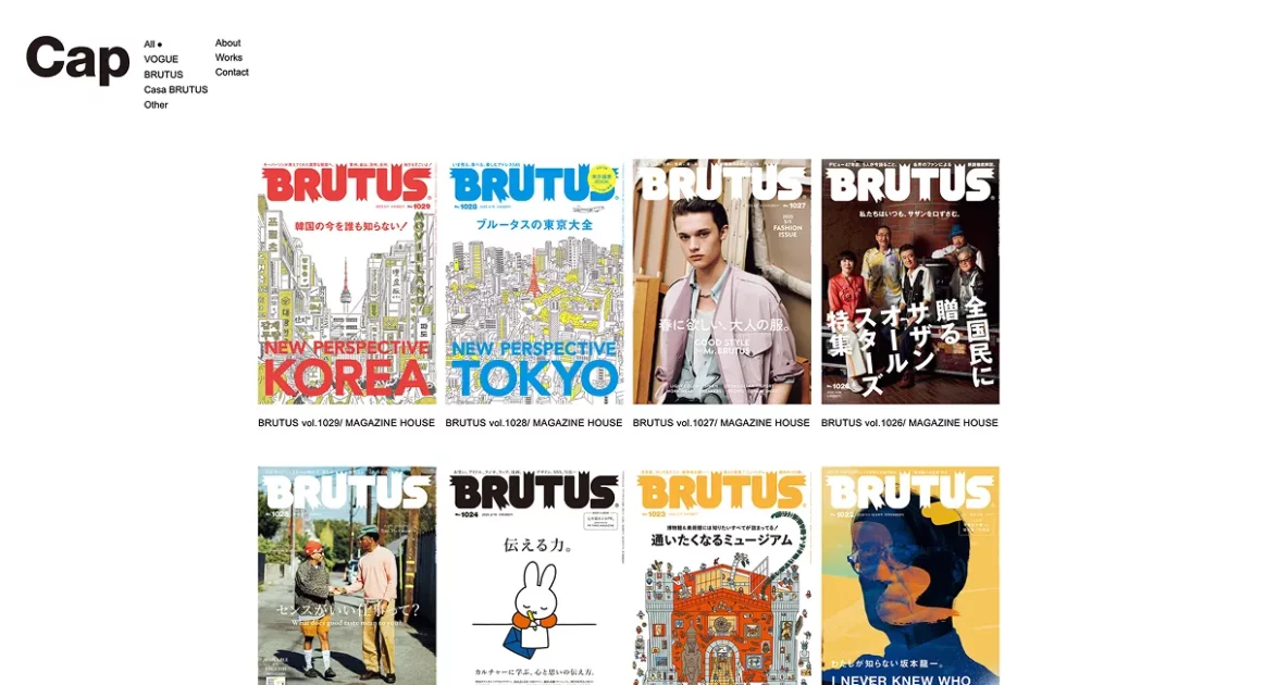 特に、 BRUTUSや Casa BRUTUSのデザインを手がける 制作会社Capのウェブサイトを