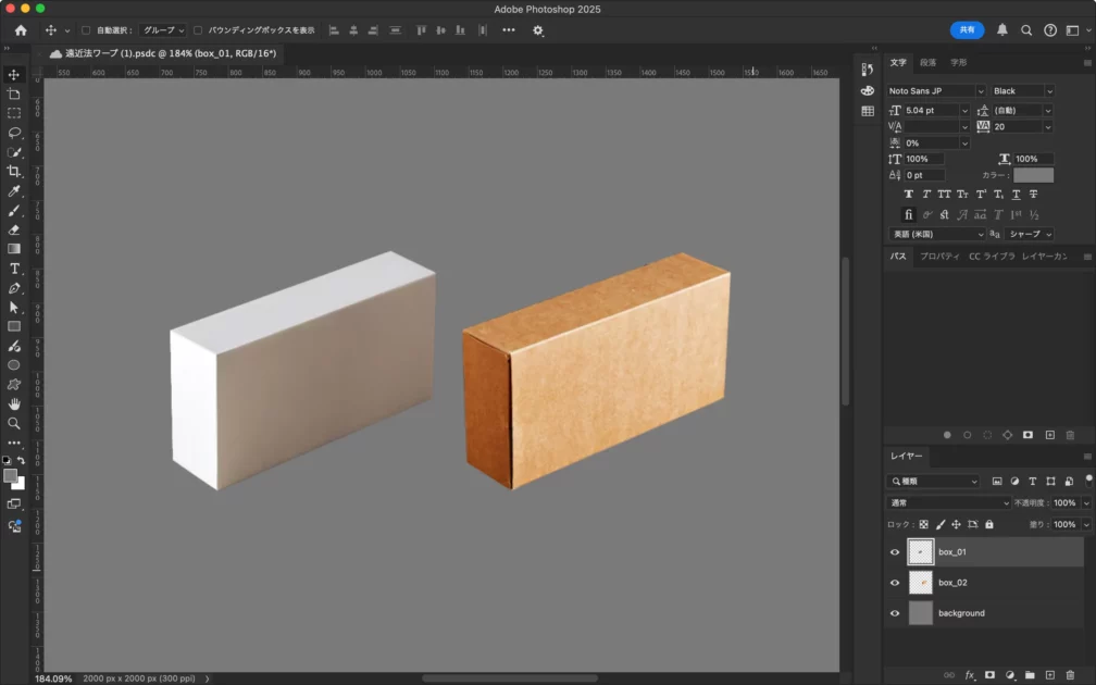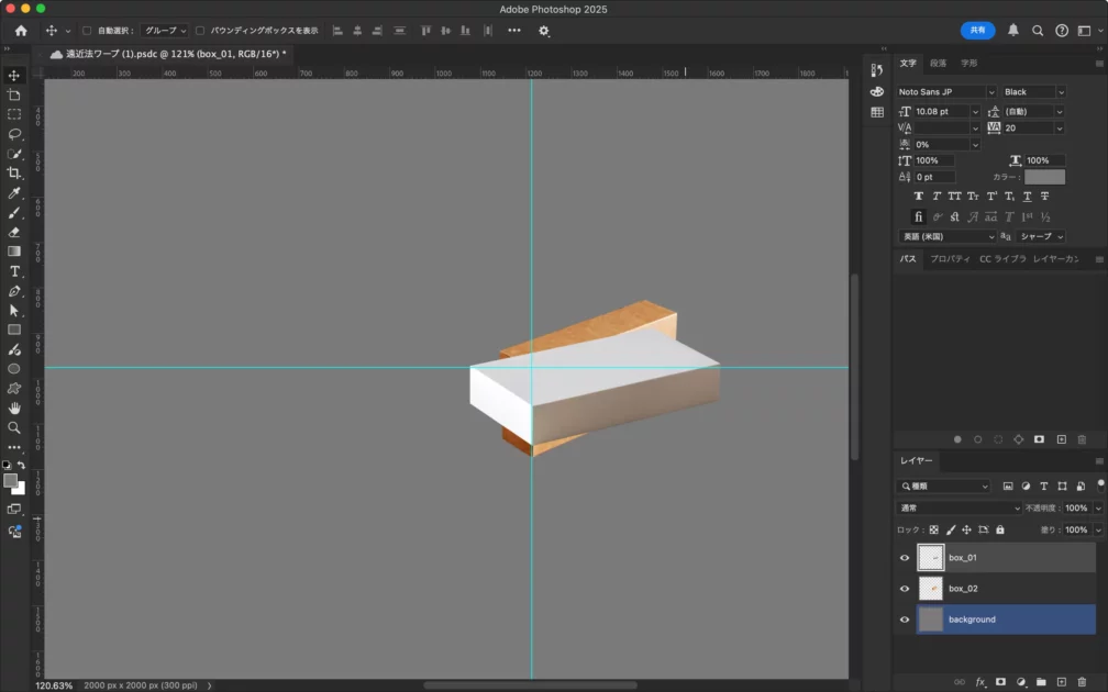 遠近法ワープの使い方(2つの箱の角度を揃える)