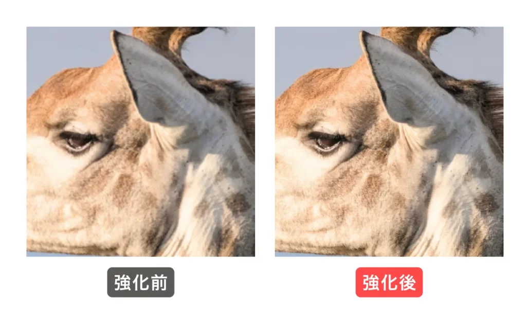 スーパー解像度した画像をBefore / Afterを見比べることで直感的に理解できます。