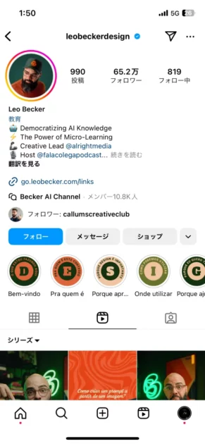 Leo Becker(@leobeckerdesign)は、20年以上の経験を持つデザイナーであり、教育者、コミュニケーターとしても活動しています。彼はInstagramやTikTokで、主にデザインに関するヒントやチュートリアルを日々発信しており、Adobe IllustratorやAIを活用したデザインテクニックについてのコンテンツを提供しています。また、ブラジルのデザイン業界で有名なポッドキャスト「Fala Colega」のホストとしても知られています。