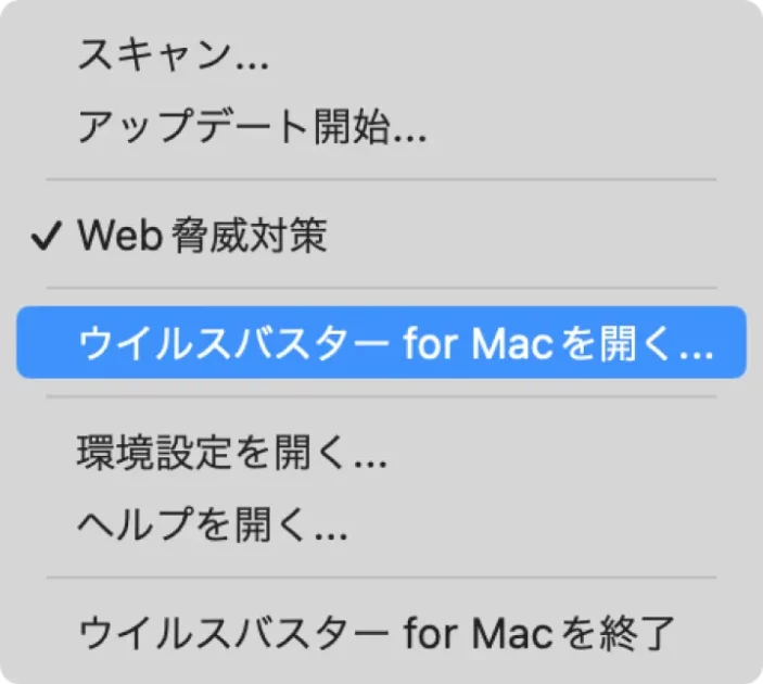 画面右上(メニューバー)のウイルスバスターのアイコンをクリックし、
