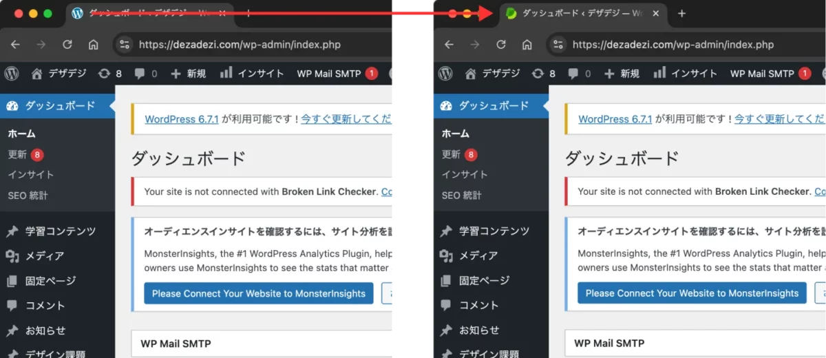 - 管理画面にアクセスし、faviconが変更されているか確認します。