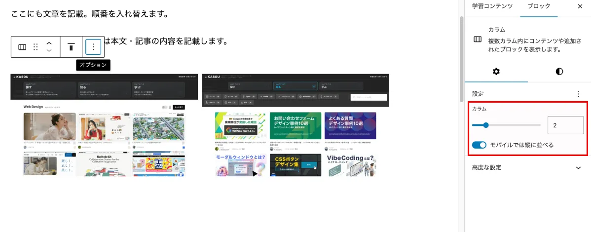 実務では「2カラム」が最も扱いやすく、デザイン崩れも起きにくいです。