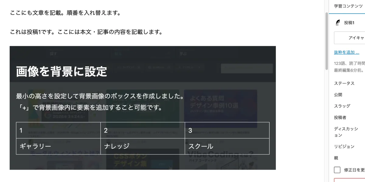 特にブロックエディター(Gutenberg)では、標準機能だけでもかなり柔軟な表現が可能です。