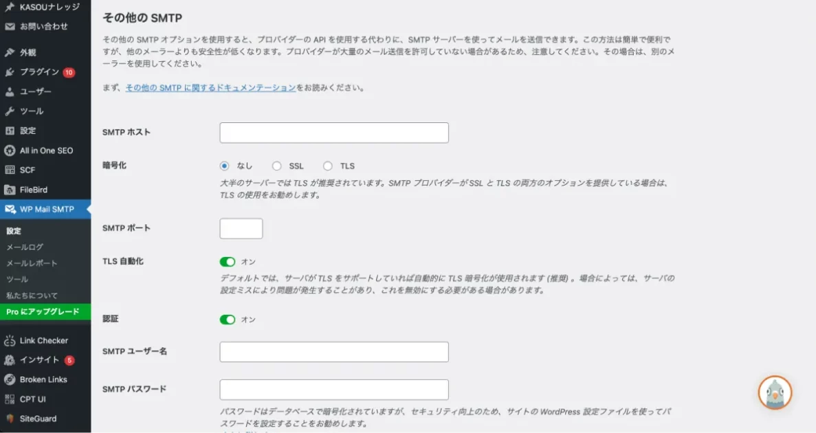 WP Mail SMTPプラグインを使用すると、以下のような設定が簡単に行えます。