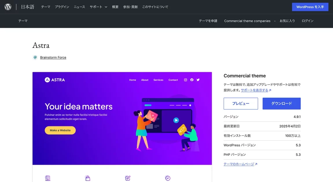 - 軽量なテーマを使用