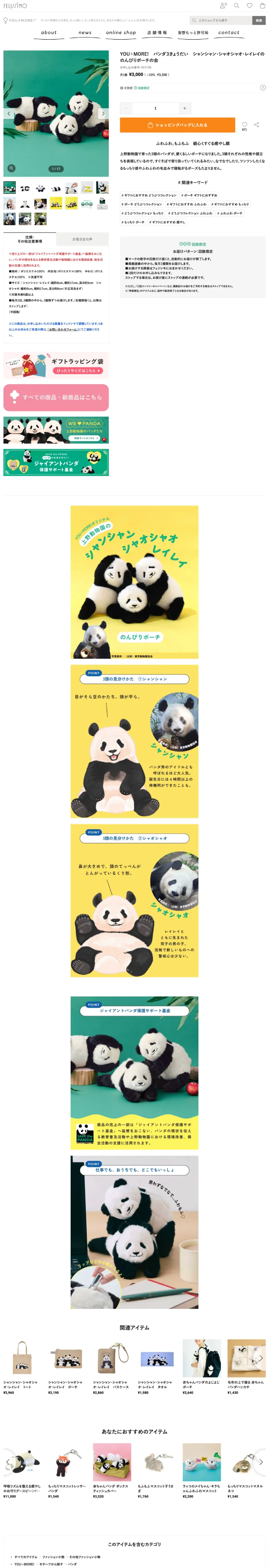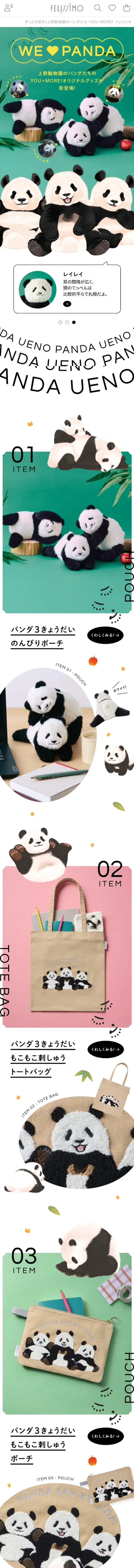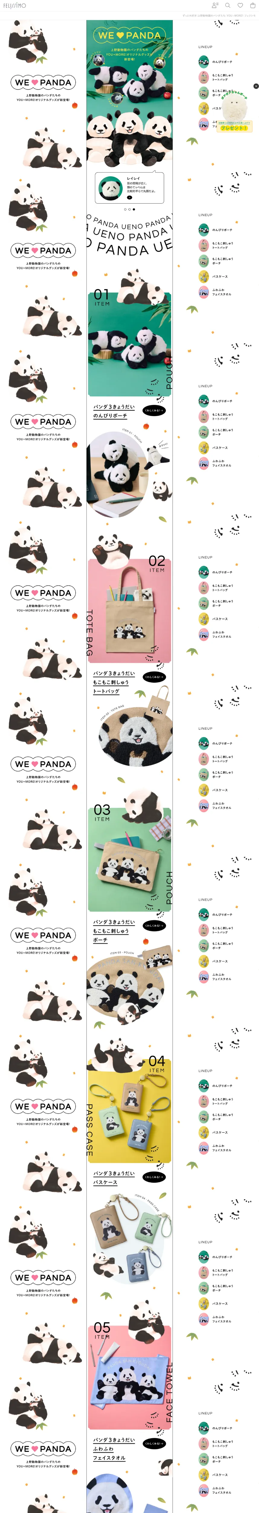 https://www.felissimo.co.jp/youmore/thanks-panda/thanks-panda_ym.html上野動物園の愛らしいパンダたちに感謝を込めたグッズが登場!可愛いぬいぐるみポーチや雑貨など、特別なアイテムをチェック。