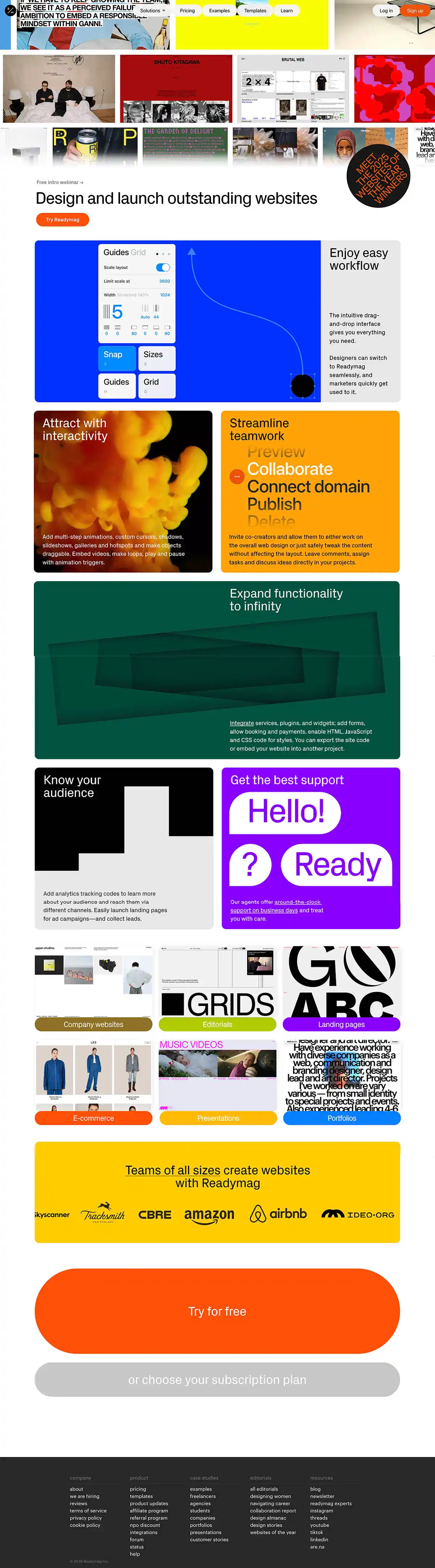 Studioのようなノーコードサイト作成サービス。テンプレートが豊富で全ページとてもキャッチー
