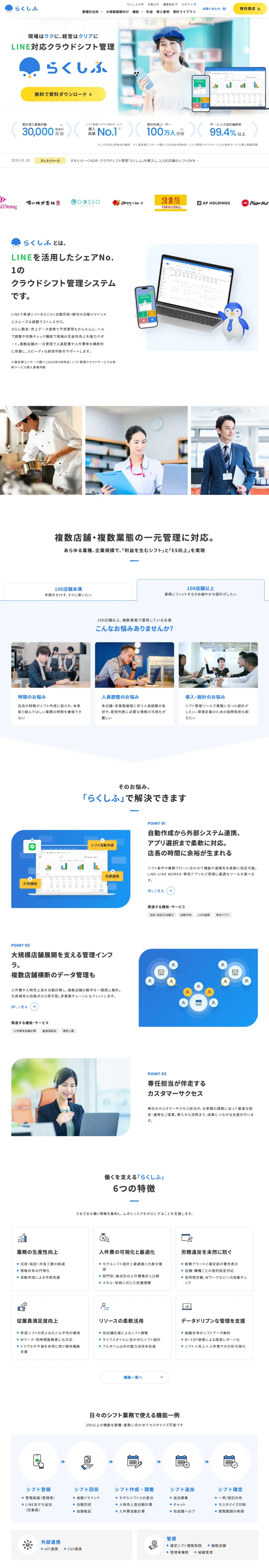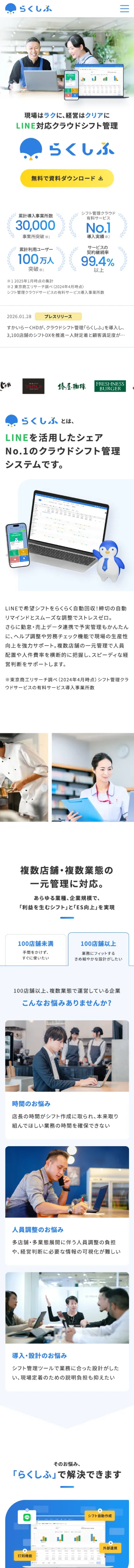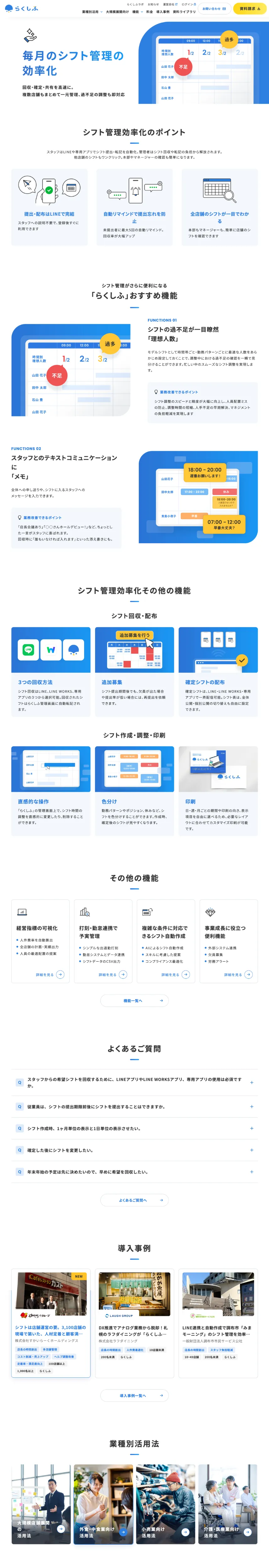https://rakushifu.jp/「らくしふ」は、シェアNo1のクラウドシフト管理システムです。LINEにも対応し、シフトデータを活用し日々のシフト作成の効率化から、経営判断迅速化・利益率向上を実現します。複数事業所・店舗の一元管理にも。
