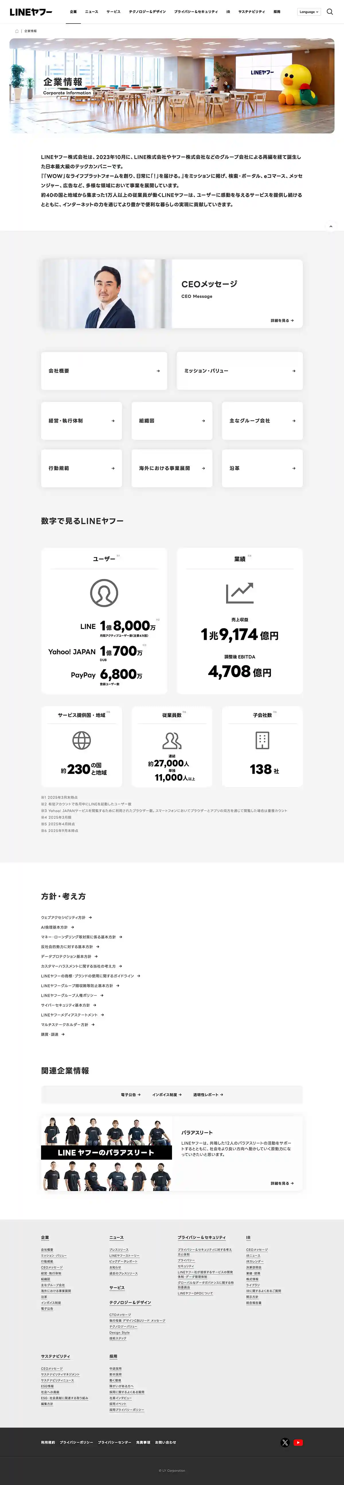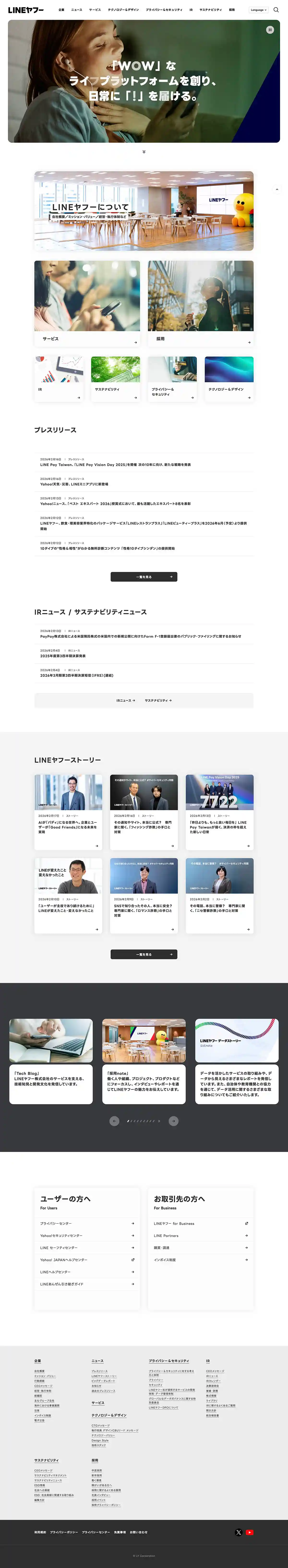 LINEヤフー株式会社のコーポレートサイトです。2023年10月にヤフー株式会社とLINE株式会社などが再編されて生まれました。「WOW」なライフプラットフォームを創り、日常に「!」を届けます。