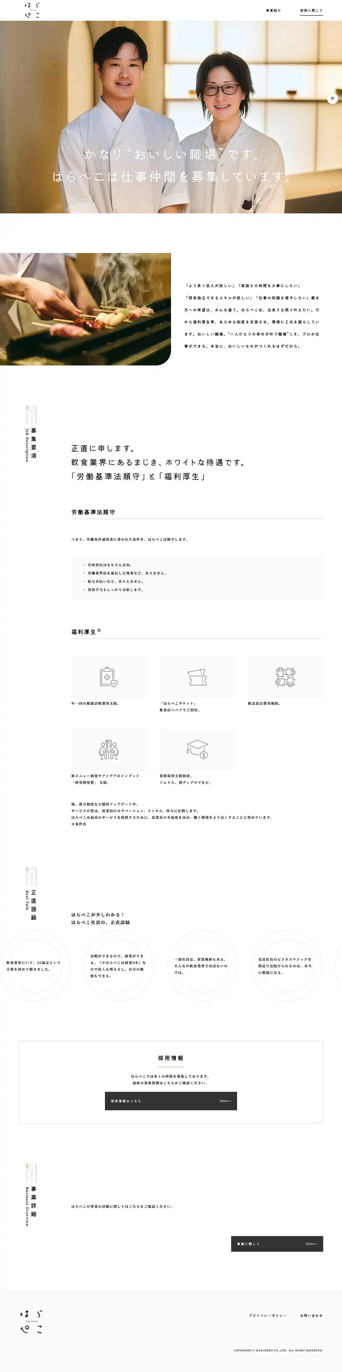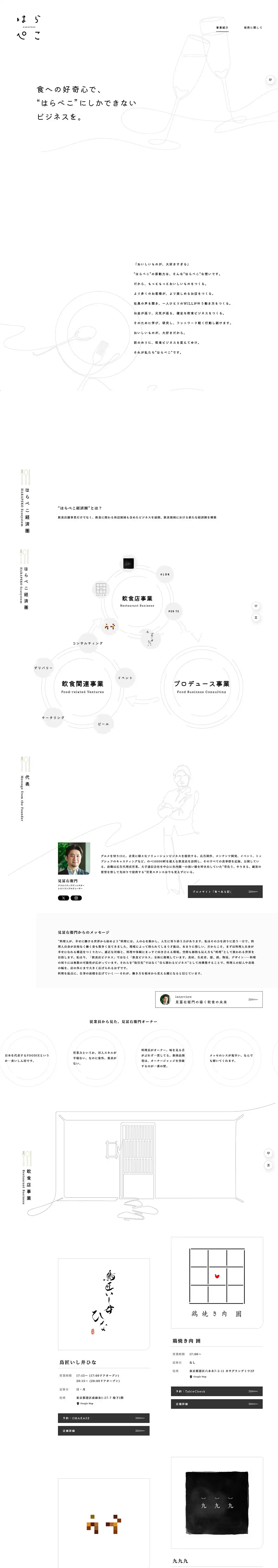 https://www.hara-peko.co.jp/食への好奇心で、 “はらぺこ”にしかできない ビジネスを。株式会社はらぺこは、店舗運営にとどまらず、周辺領域も含めた飲食ビジネスを展開し、新たな経済圏の創出を目指しています。