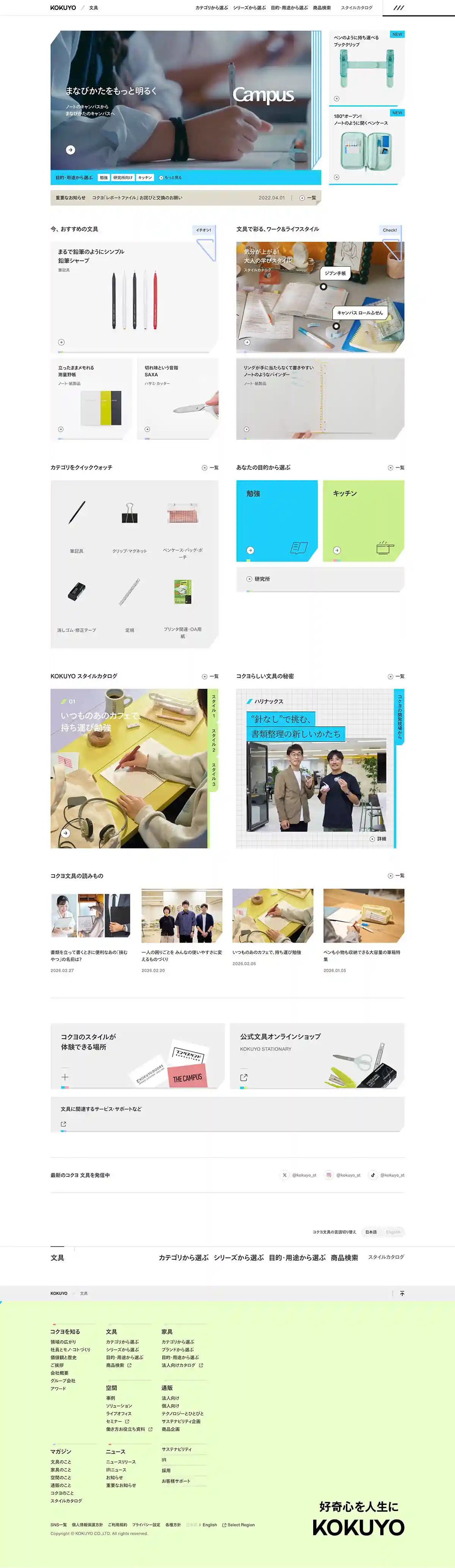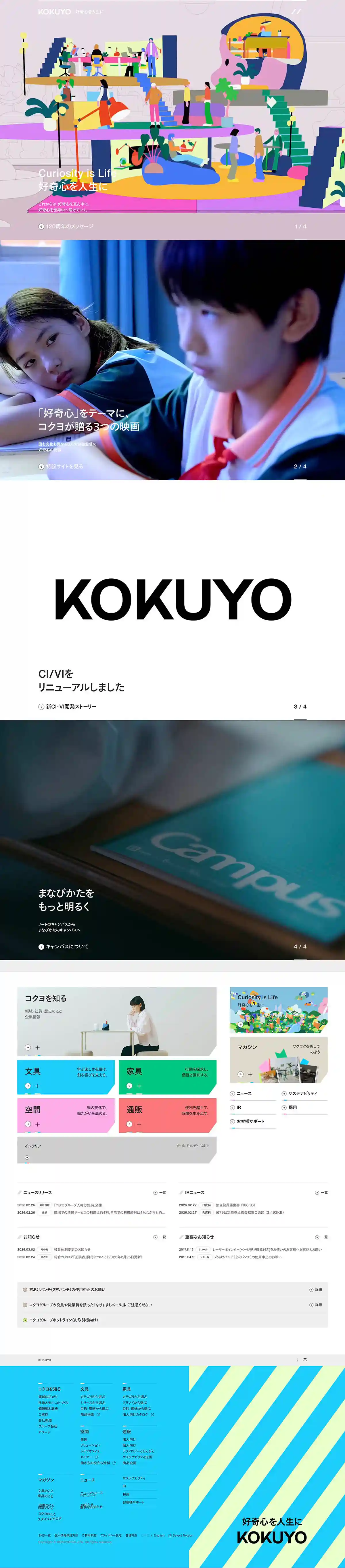 https://www.kokuyo.com/コクヨ株式会社のコーポレートサイト。コクヨは「好奇心を人生に」を真ん中に、ワクワクする「働く」「学ぶ」「暮らす」の製品・サービスを提供しています。会社概要、製品・サービス情報、IR情報、サステナビリティ情報、採用情報を紹介しています。