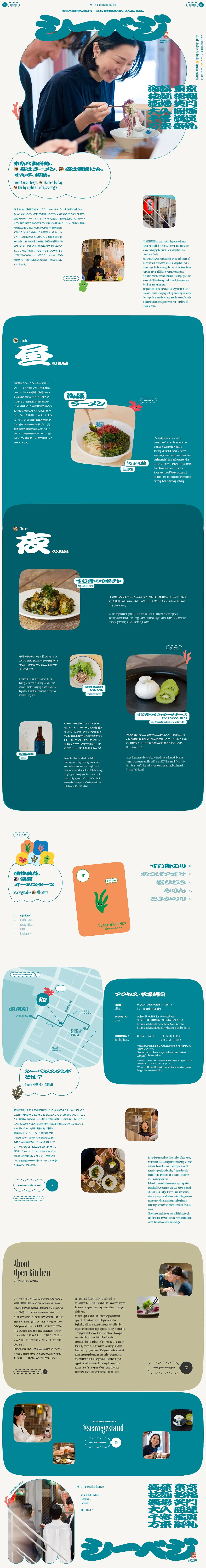 https://seavege-stand.com/「シーベジスタンド」は海藻の魅力を発信する新拠点。昼は海の旨みが凝縮した海藻ラーメン、夜は海藻料理とお酒を気軽に楽しめる立ち飲みスタイルに。仕事帰りや旅の合間に、海藻を主役にした新しい食体験をぜひお楽しみください。
