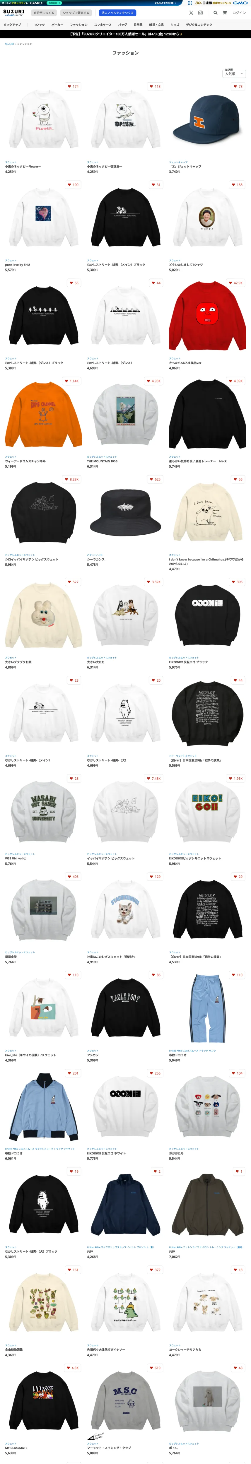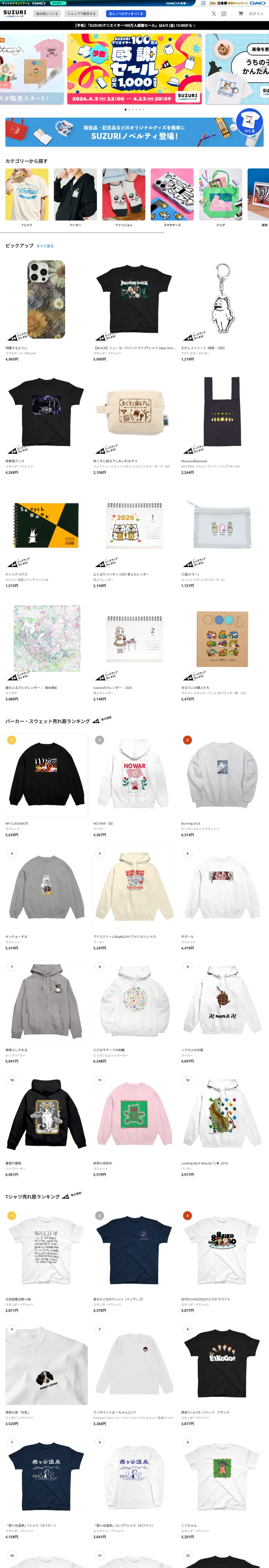 オリジナルグッズ・アイテムを手軽に作成・販売できる通販サイト SUZURI by GMOペパボ