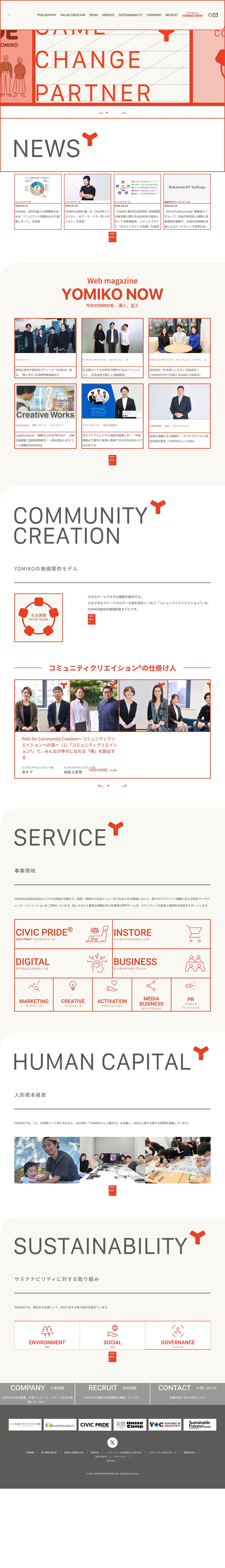 https://www.yomiko.co.jp/YOMIKOのWEBサイト。「コミュニティクリエイション®」を通じて、より大きなチームで、より大きな課題を解決していきます。PHILOSOPHY、ニュース、事業領域、サステナビリティ、企業情報、採用情報、最新レポートの提供。