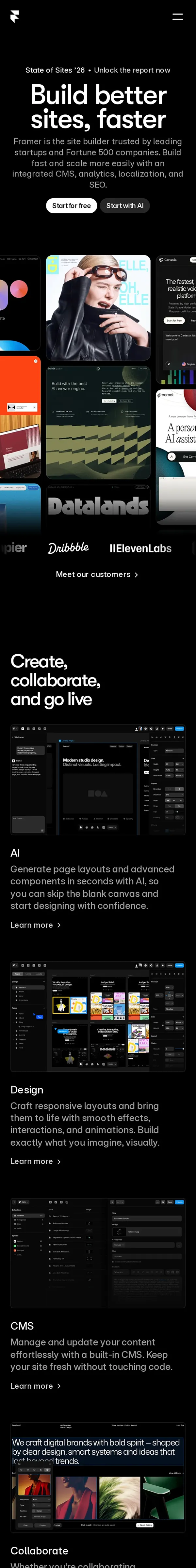 https://www.framer.com/Build a free website with Framer—enjoy full design freedom, powerful CMS, built-in SEO, and real-time collaboration. Create professional, fully custom sites with the no-code builder loved by designers and high-performing teams.