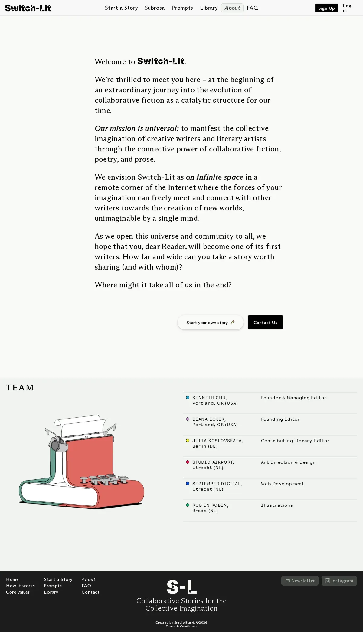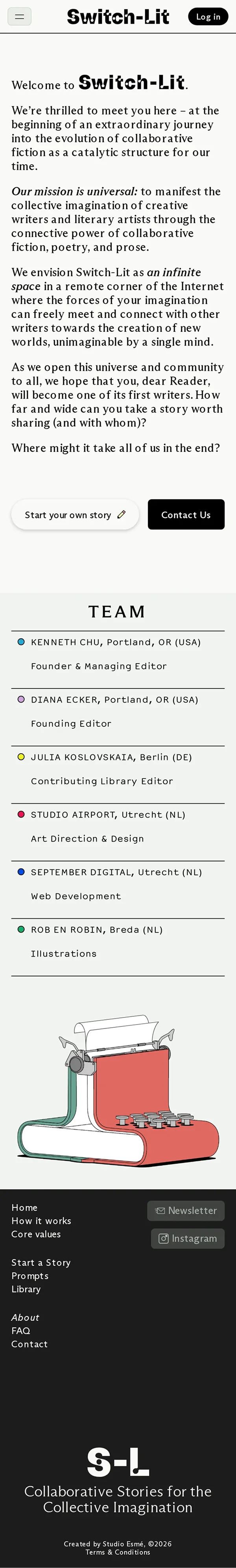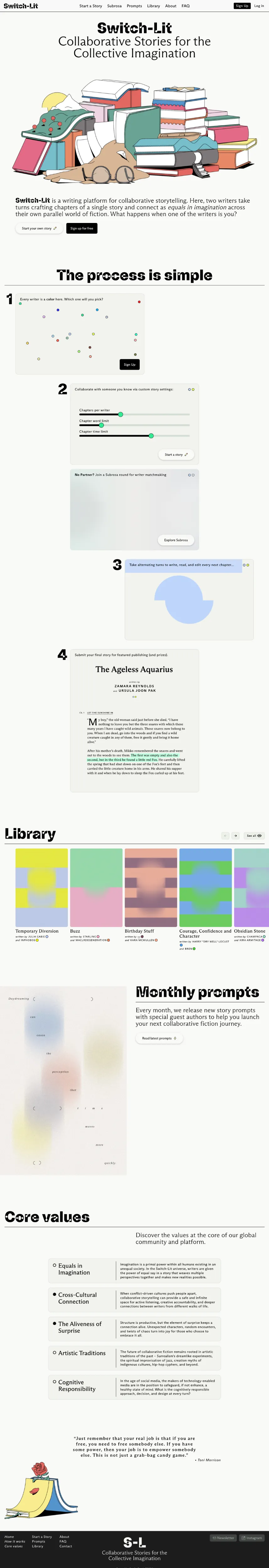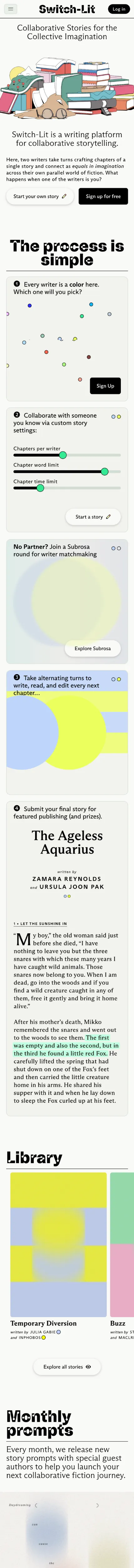 https://switch-lit.com/Two writers take turns crafting chapters of a single story and connect as equals in imagination. What if one of them is you?