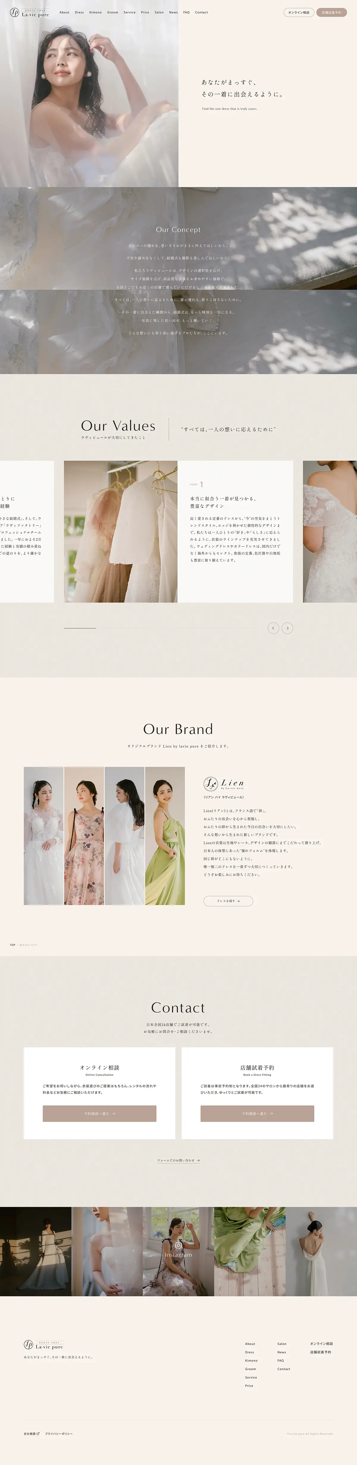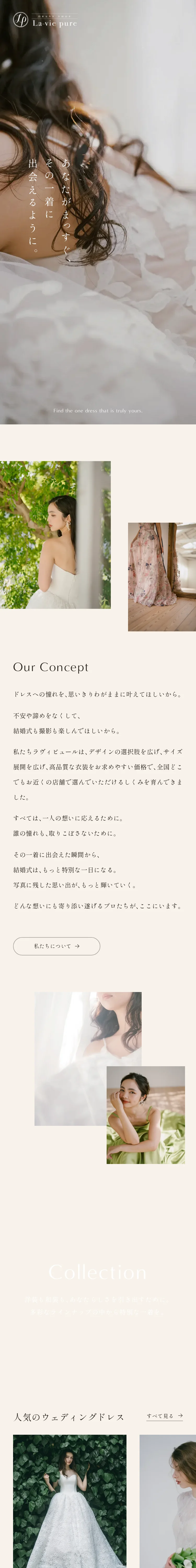 https://www.la-viepure.com/結婚式や前撮りのウェディングドレス・カラードレス・和装のレンタルならラヴィピュールへ。全国24店舗で多彩なドレスと着物をご用意。試着からコーディネートまで専門スタッフが理想の一着をご提案します。