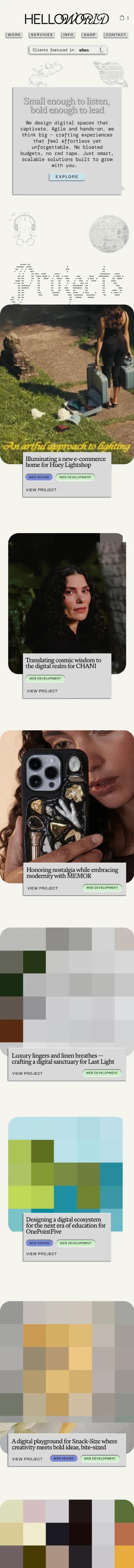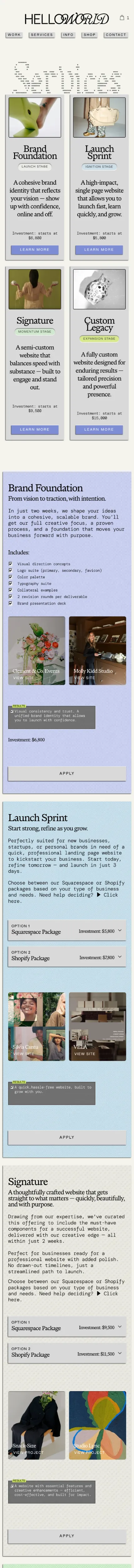 https://www.hello-world.studio/Hello-World is a creative web design studio specializing in custom Squarespace, Shopify and Webflow websites that are bold, scalable, and easy to manage. We craft smart digital experiences that blend design and functionality for effortless, unforgettable online presence.