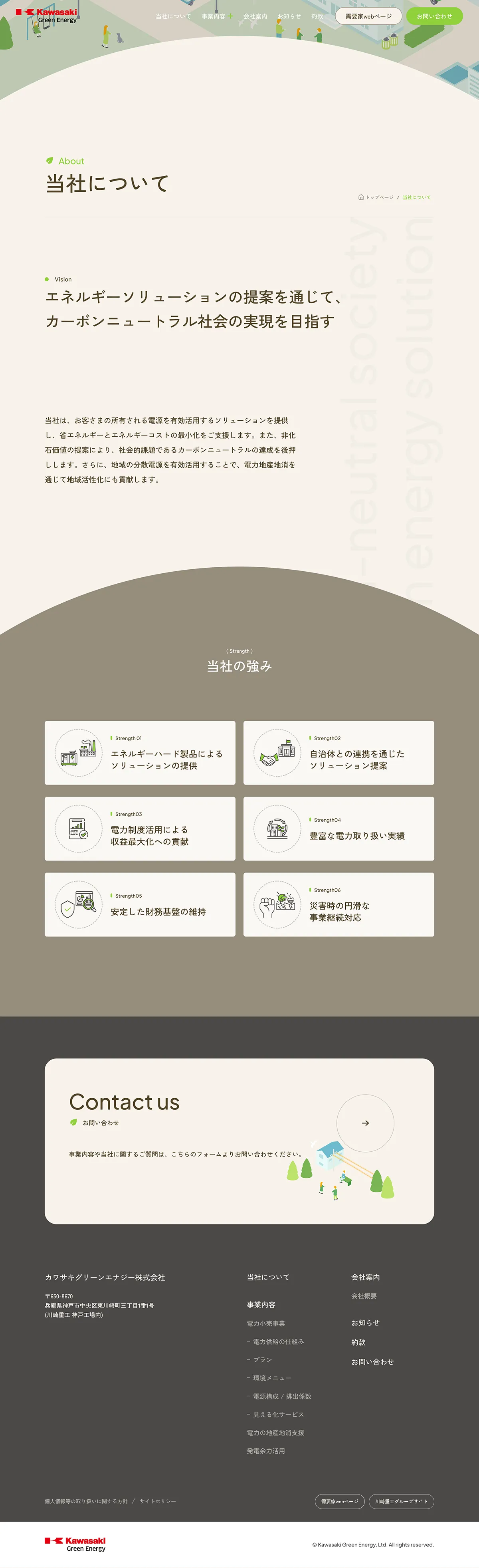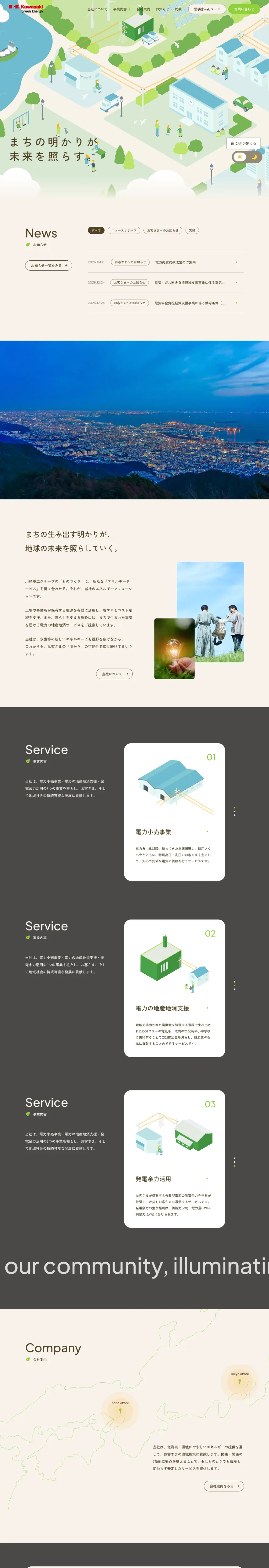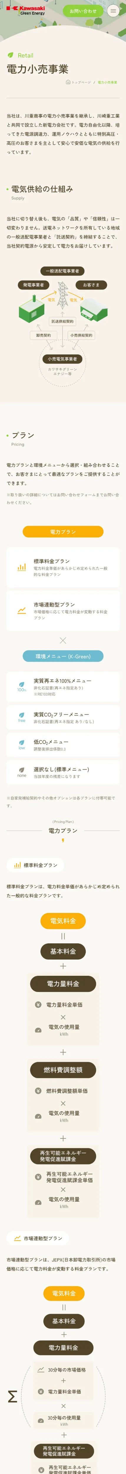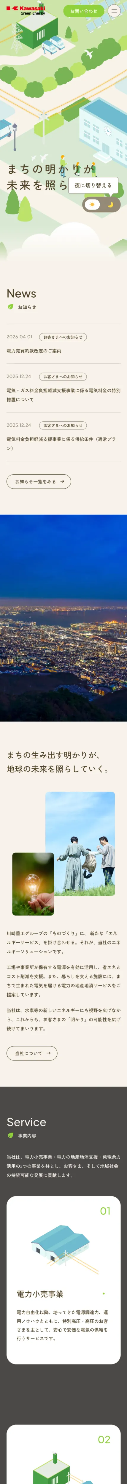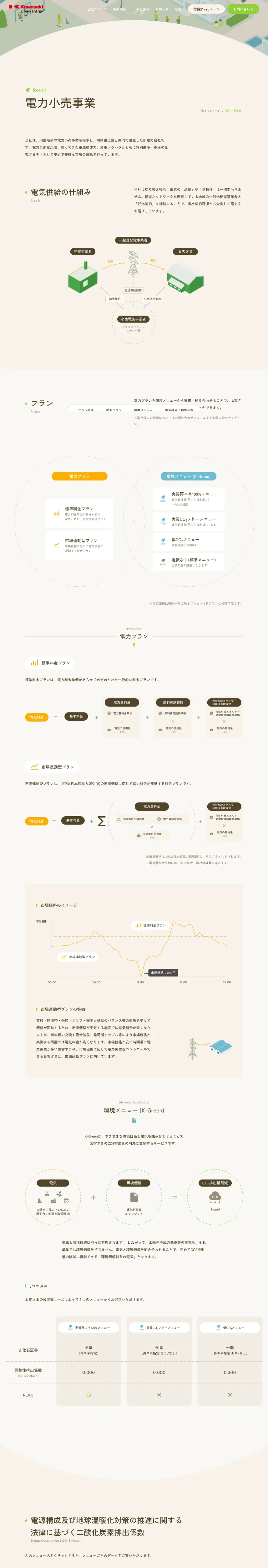 https://kgen.co.jp/川崎重工グループのカワサキグリーンエナジーは、低炭素エネルギーの提供を通じて企業の脱炭素化を支援する新電力会社です。CO2フリーの電力小売事業や電力の地産地消など、環境施策とコスト削減を両立するソリューションを提案し、東北から四国へ安定した供給を実現します。