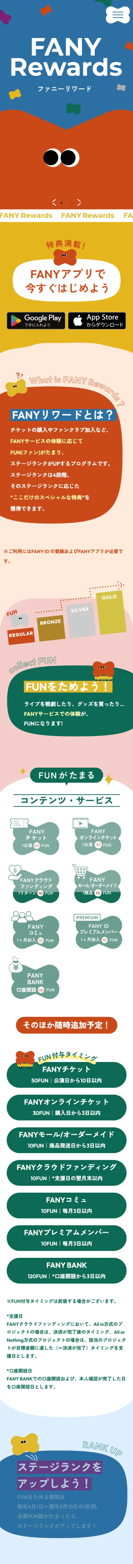 https://rewards.fany.lol/FANYサービスの体験に応じてたまったFUN(ファン)で、ステージランクがUPするプログラム!ステージランクに応じた“ここだけのスペシャルな特典”をゲットしよう!