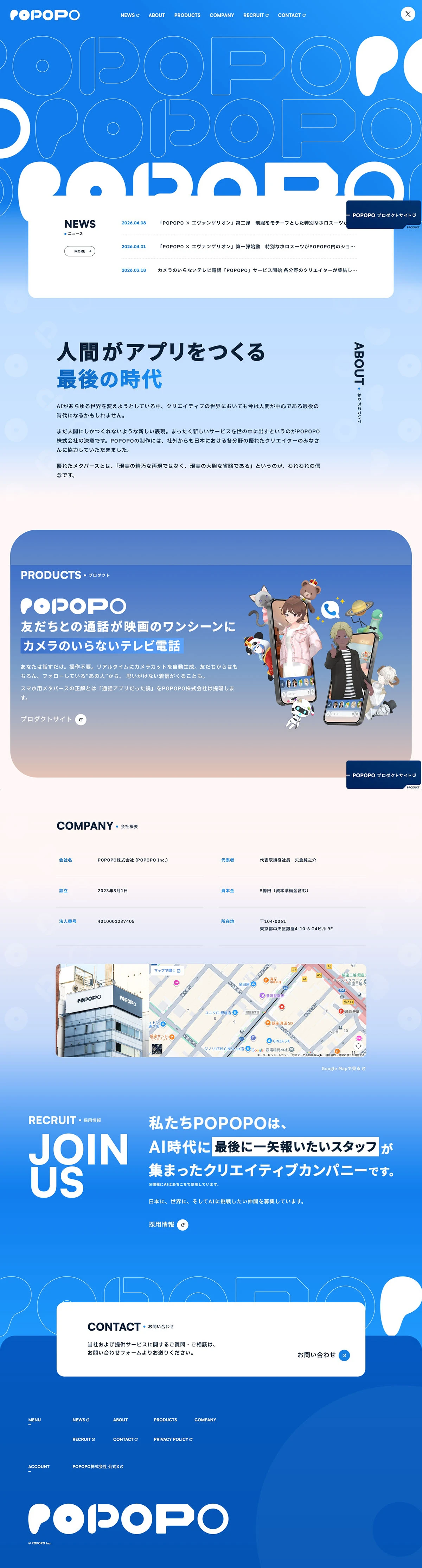https://www.popopo.com/corp/私たちPOPOPOは、AIに最後、一矢報いたいスタッフが集まったクリエイティブカンパニーです。年齢や国境を越え、誰もが楽しめる日常を。