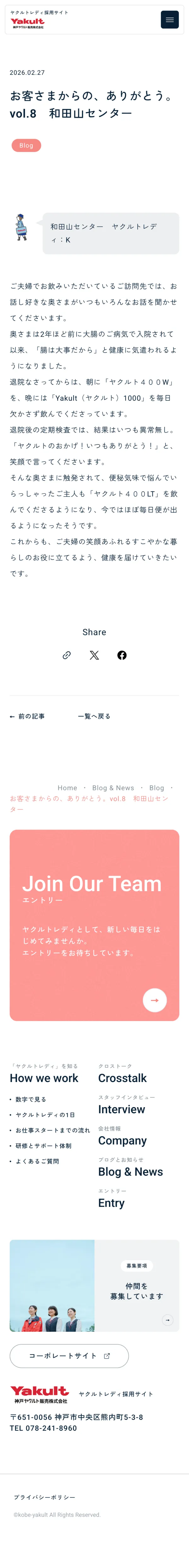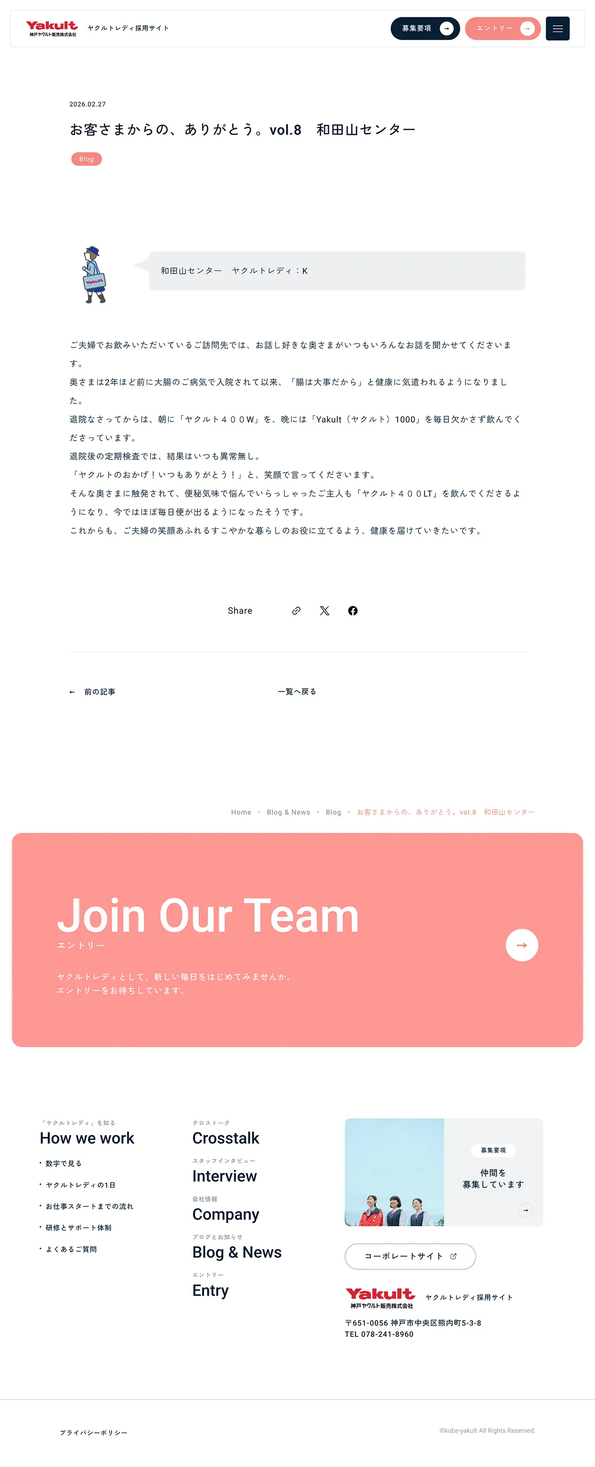 神戸ヤクルト販売ヤクルトレディ採用サイト | 地域の皆様に健康をお届けする神戸ヤクルト販売株式会社のヤクルトレディ採用サイト