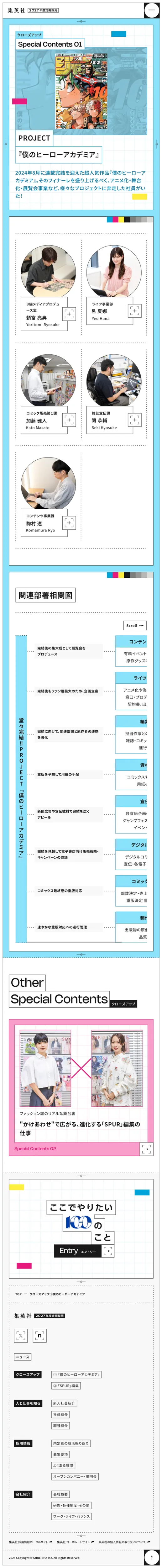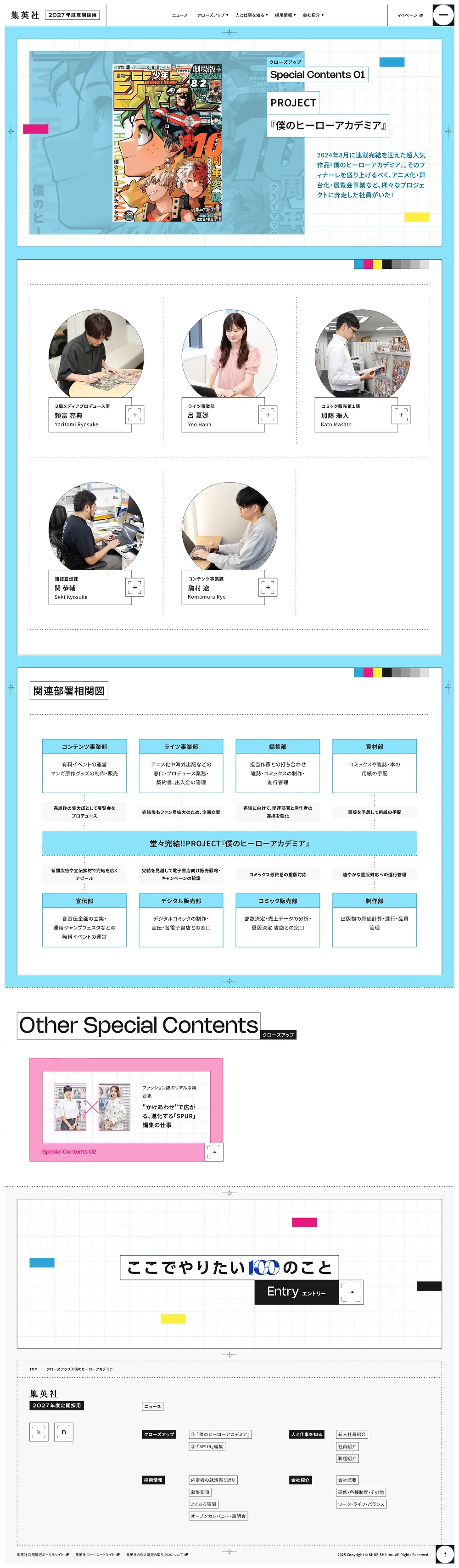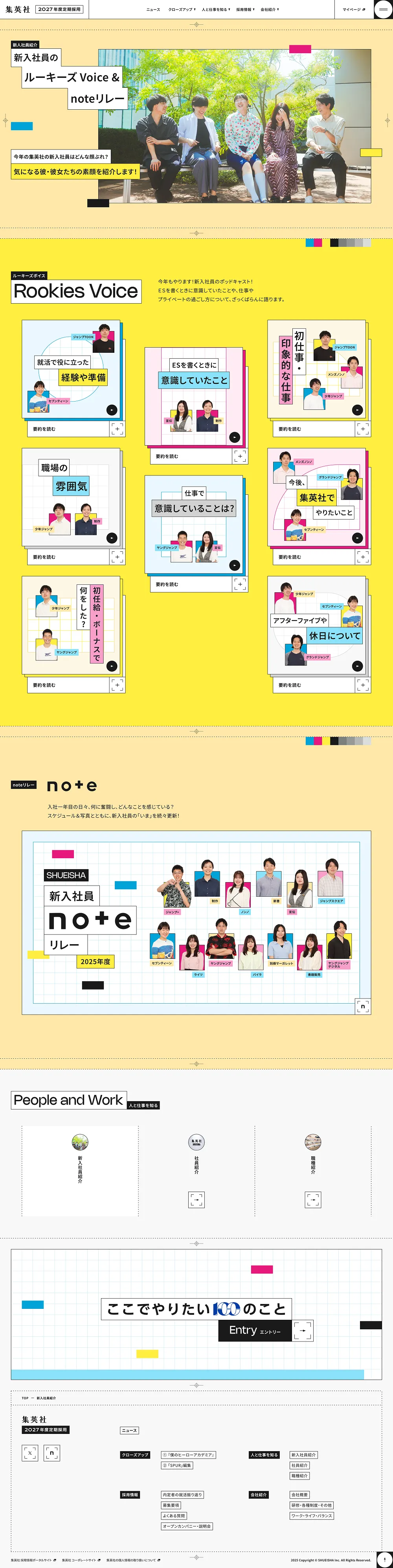 集英社の2027年度定期採用情報ページです。会社紹介、社員紹介、仕事紹介ほか各種採用関連の情報を公開しています