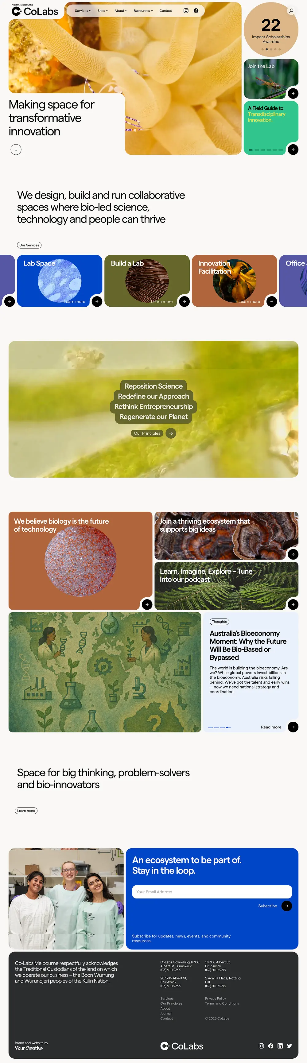 海外サイトならではのBento Gridと逆角丸の構成が、今っぽく先進的な印象。手間を惜しまない細部のこだわりが素敵です!